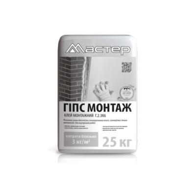 Клей для гіпсокартону Мастер ГІПС МОНТАЖ є надійним вибором для здійснення якісного монтажу гіпсокартону, забезпечуючи тривале та міцне з'єднання.