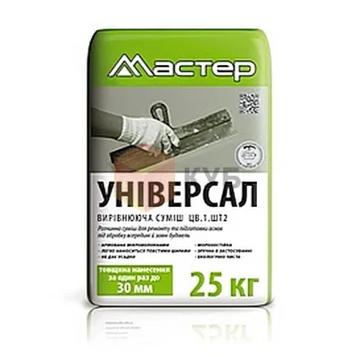 Мастер універсал - це високоякісний будівельний матеріал, який призначений для використання в різноманітних ремонтно-будівельних роботах. Він має універсальні характеристики, що дозволяють застосовувати його як для внутрішніх, так і для зовнішніх робіт.