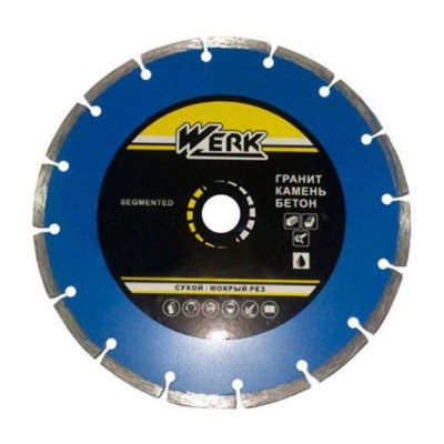 Круг алмазний Segment 125х22.23 WERK 39560 - ідеальний інструмент для професіоналів та аматорів, які шукають надійність та ефективність у своїй роботі. Використовується для різання бетону, цегли, каміння та інших твердих матеріалів. Завдяки своєму особливому дизайну з сегментами, цей круг забезпечує швидкий та чистий зріз.