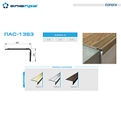 Поріг ПАС – це елегантне рішення для створення стилю і комфорту у вашому просторі. Модель з розмірами 1353 мм, 40х20 мм відрізняється витонченим дизайном та практичними характеристиками.