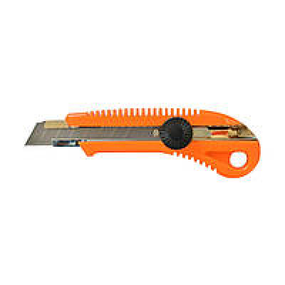 Ніж обойний з обертовим фіксатором, зміцнений, ширина леза 18 мм, довжина леза 99 мм, загальна довжина 145 мм. Корпус ножа виготовлений з пластмаси помаранчевого кольору, лезо металеве сегментоване. Ніж має зміцнений сталевий направляючий елемент для леза. Висування та фіксація леза здійснюється за допомогою пластикового винта чорного кольору.