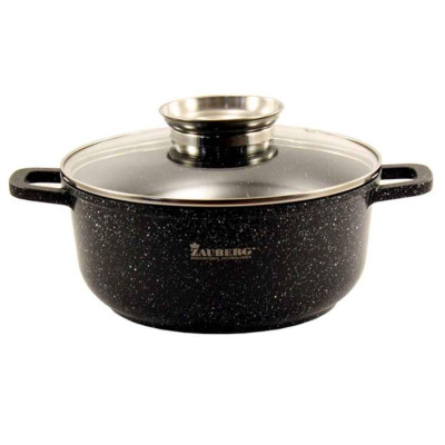 Каструля Zauberg об'ємом 1.7 л виготовлена з литого алюмінію з мраморним антипригарним покриттям. Вона має кришку та підходить для всіх видів плит, включаючи індукційні. Ця каструля забезпечує рівномірний розподіл тепла та легкість у приготуванні страв.