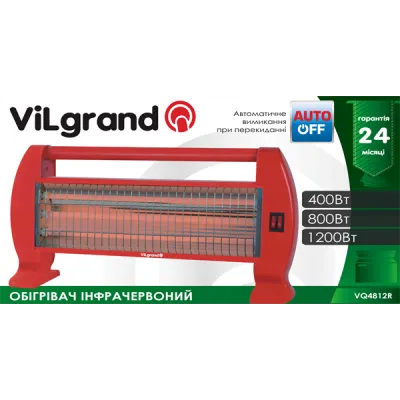 Обігрівач Vilgrant VQ4812R працює в трьох робочих режимах з вибором потужності: 400 Вт, 800 Вт та 1200 Вт. Має зручну ручку для перенесення та решітку. Призначений для використання в приміщеннях площею до 16 м².