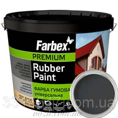 Фарба гумова чорна 12кг 339947 Фарбекс - це надійний і універсальний матеріал, який відповідає всім сучасним вимогам щодо якості і довговічності. Замовте зараз і надайте своїм проектам професійного вигляду!