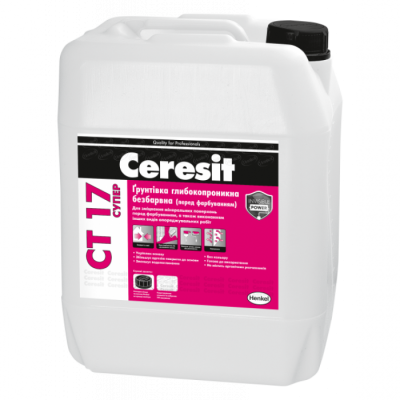 Грунт CT-17 Супер Ceresit – це високоефективний акриловий грунт-просочення, спеціально розроблений для підготовки різних поверхонь перед нанесенням фарби або декоративних покриттів.