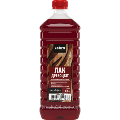 Лак кольоровий «Древоцвет» ТМ Зебра Дуб об'ємом 0,5 л призначений для надання кольору покриттю, зберігаючи текстуру та підкреслюючи природну красу деревини. Завдяки різній кількості шарів, поверхня може варіюватися від матової до глянцевої.