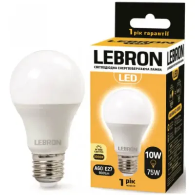 LED лампа LEBRON L-A60 - це ідеальне рішення для освітлення вашого дому чи офісу. Завдяки потужності 10 Вт, вона забезпечує яскраве світло, яке еквівалентне лампі розжарювання потужністю 75 Вт, але з набагато нижчим енергоспоживанням. Температура світла 3000K створює затишну атмосферу, ідеально підходить для житлових приміщень.
