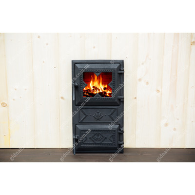 Дверка виготовлена з високоякісного чавуну, що забезпечує надійність та довговічність. Розміри - 49х27 см, ідеально підходить для використання в камінах, печах та інших опалювальних системах.