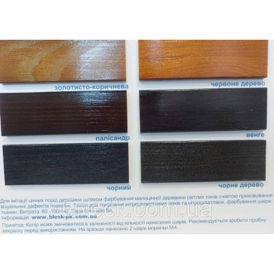 Перед використанням рекомендується протестувати на невеликій ділянці деревини, щоб перевірити сумісність та отримати бажаний колір.