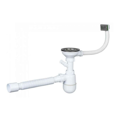Сифон обладнаний полірованою сіткою випуску, що запобігає потраплянню сміття в каналізацію. Гнучка труба переливу забезпечує легкість у встановленні та експлуатації.