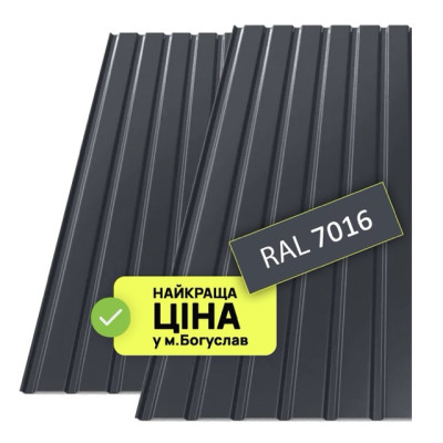 Теги: купити Металопрофіль сірий антрацит мат 2м.х1,15м 9хв RAL7016 Богуслав, ВікторіяБуд, Металопрофіль.