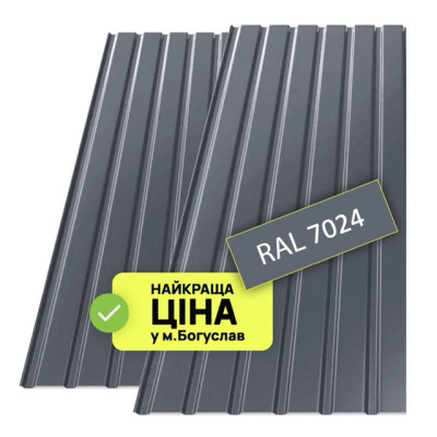 Теги: купити Металопрофіль сірий Попелястий мат 1,5м.х1,17м RAL7024, за лист Богуслав, ВікторіяБуд, Металопрофіль.