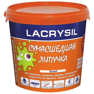 Клей Лакрісіл - це універсальний клей, який забезпечує надійне з'єднання і швидке висихання. Білий колір робить його ідеальним вибором для роботи з різними поверхнями, адже він практично непомітний після висихання.