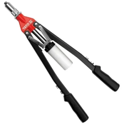 Заклепник YATO - це надійний інструмент для з'єднання металевих та пластикових елементів за допомогою заклепок. Його ергономічний дизайн і двохручне управління забезпечують максимальний комфорт під час роботи.
