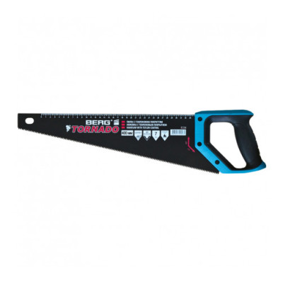 Ножовка з тефлоновим покриттям Tornado, довжина 400 мм, призначена для роботи з деревом. Полотно має одностороннє виконання та оснащене загартованими зубцями з двохгранною заточкою.