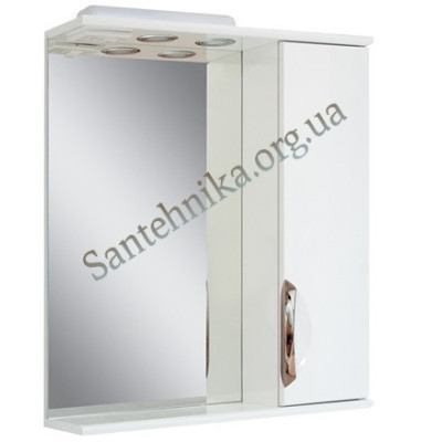 Дзеркало Альвеус 730х700 з правим розташуванням оснащене зручним закритим зеркальним ящиком з однією стороною та полицею на всю ширину. Воно має підсвітку та розетку, що робить його ідеальним вибором для ванної кімнати. Корпус виконаний з ламінованого ДСП в білому кольорі, що забезпечує стильний вигляд та довговічність.