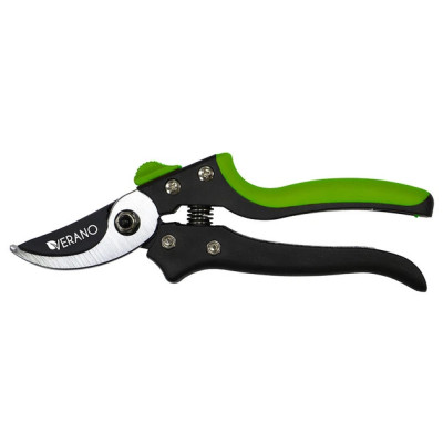 Секатор Verano 71-804 призначений для підрізання живих гілок. Довжина інструменту складає 205 мм, а максимальний діаметр зрізу досягає 18 мм. Верхнє лезо виготовлене з високовуглецевої сталі SK5, товщина якого становить 4 мм. Рукоятка секатора виконана з пластмаси, що забезпечує легкість у використанні.