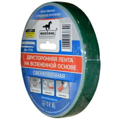 Двосторонній скотч на спіненій основі Mustang FT195 забезпечує надійне з'єднання для різноманітних матеріалів, таких як дерево, метал, пластик, скло, картон, кераміка та камінь. Завдяки клейовому шару на основі синтетичного каучуку, стрічка демонструє високу клейкість та стійкість до механічних коливань і вібрацій. Ідеально підходить для використання в домашніх умовах та в промисловості.