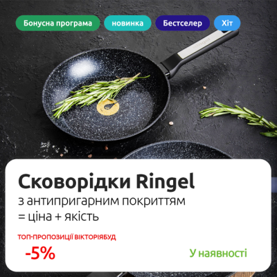 Сковорідки Ringel — це практичний вибір для дому. Вони поєднують надійність, зручність та сучасні технології. Оберіть потрібний розмір і серію у магазині «ВікторіяБуд» та готуйте із задоволенням.