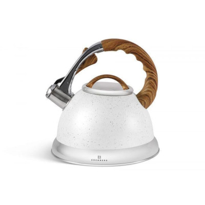 Чайник з нержавіючої сталі Edenberg EB-8852 об'ємом 3 літри має стильний чорний дизайн та оснащений свистком для зручності використання. Ручка виготовлена з бакеліту з покриттям Soft touch, що забезпечує комфортний захват. Чайник підходить для всіх видів плит, що робить його універсальним вибором для вашої кухні.