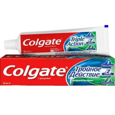 Зубна паста Колгейт 50мл Потрійна дія - це ідеальне рішення для щоденного догляду за вашими зубами. Завдяки своїй унікальній формулі, вона забезпечує три основні дії для підтримки здоров'я ротової порожнини: